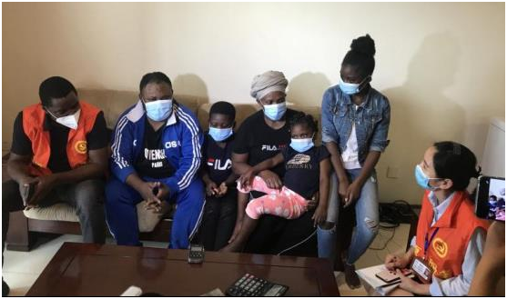 花都區的剛果商會會長阿賓(左一)配合社區工作者家訪非籍同胞
