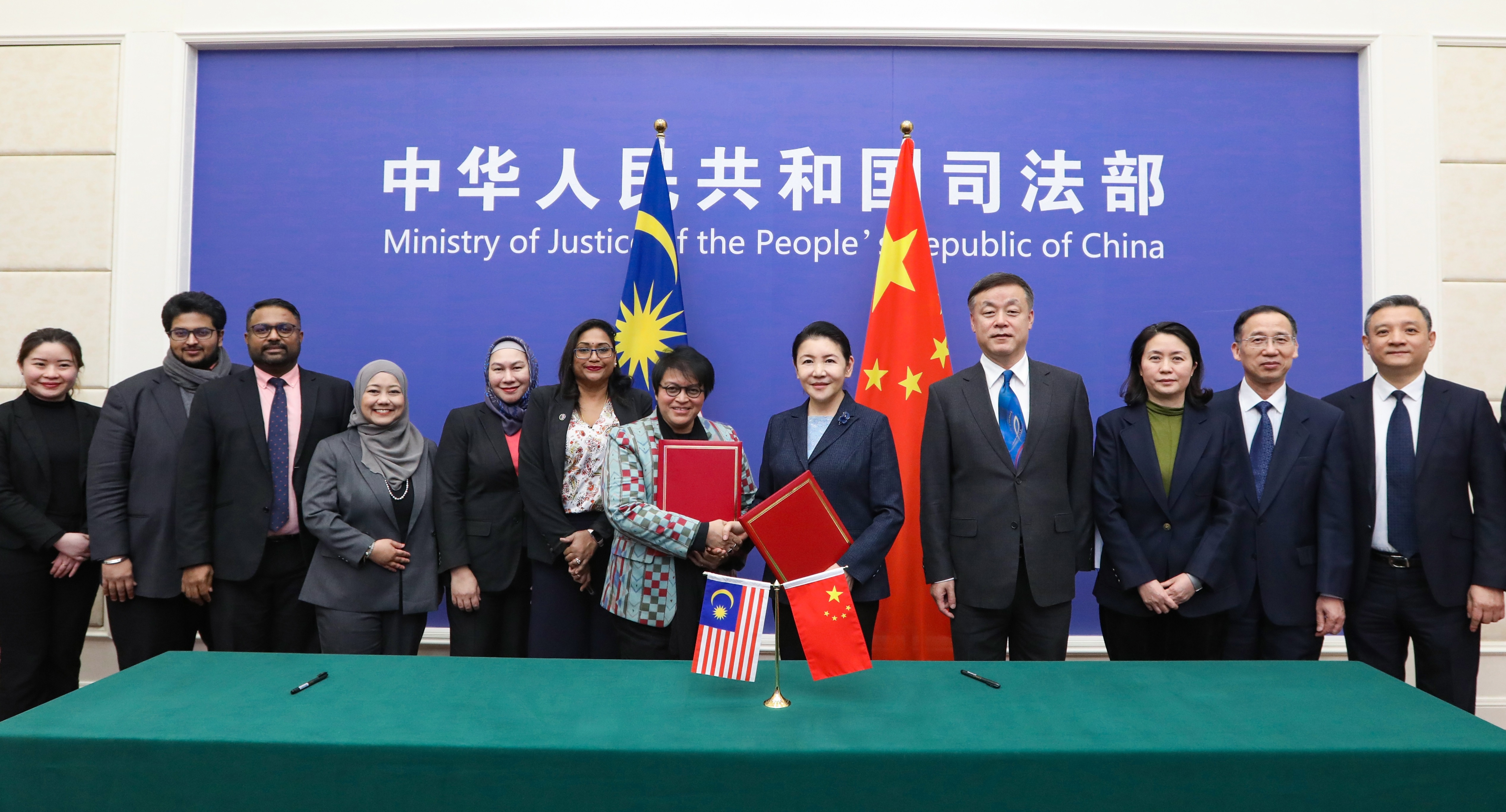 司法部部長賀榮和馬來西亞總理府法律與體制改革部部長阿莎麗娜簽署《中華人民共和國司法部和馬來西亞總理府法律事務辦公室合作意向書》。