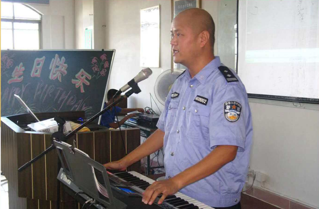 陳旭彈奏電子琴為戒毒人員過生日