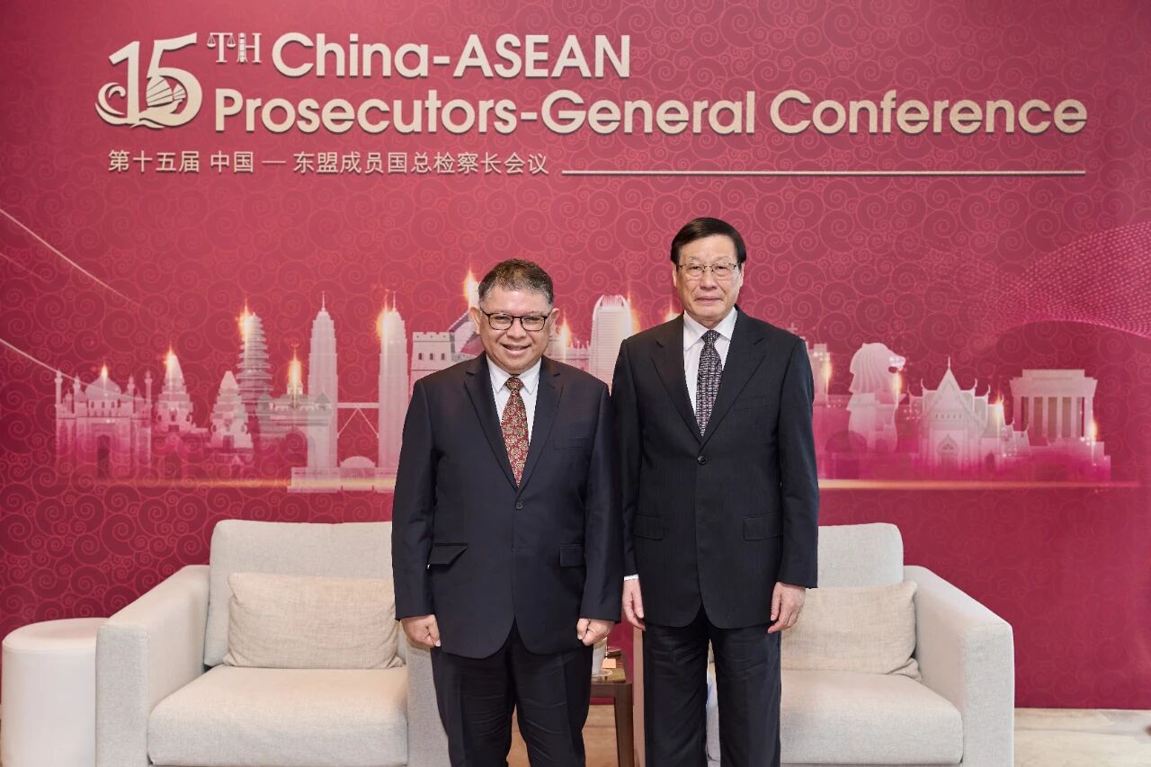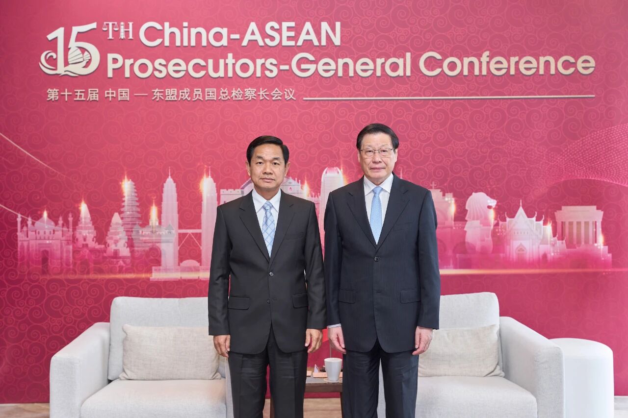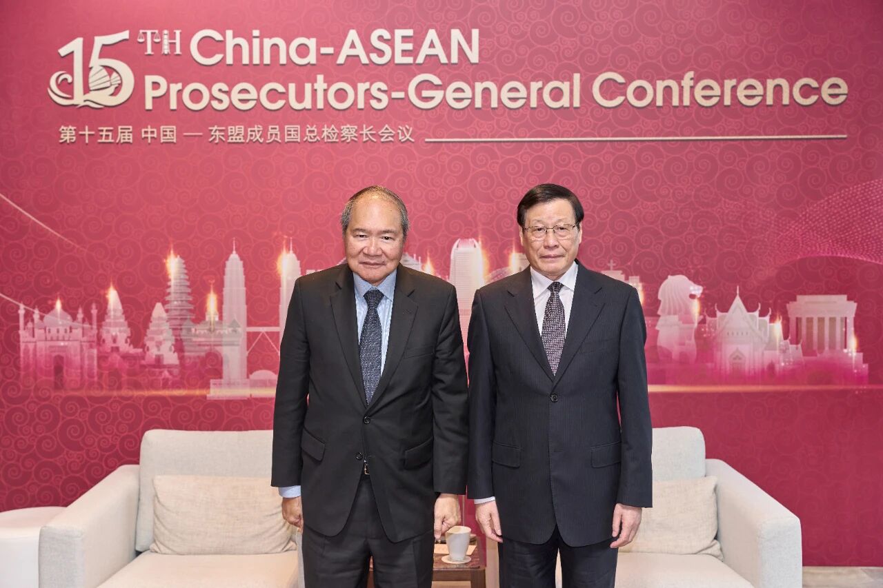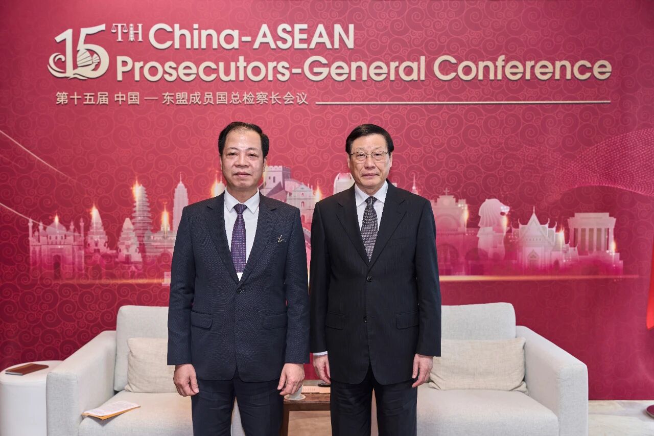 9月22日,中華人民共和國首席大檢察官、最高人民檢察院檢察長應(yīng)勇在香港特別行政區(qū)分別會見出席第十五屆中國—東盟成員國總檢察長會議的文萊總檢察長諾·哈希瑪、柬埔寨總檢察長謝梁、馬來西亞總檢察長莫哈末杜蘇基、緬甸總檢察長迪達(dá)烏、菲律賓總檢察長法杜隆、新加坡總檢察長黃魯勝、泰國總檢察長派叻及印度尼西亞副總檢察長納倫德拉·賈特納、老撾最高檢副檢察長彭坦·邦塔亞、越南最高檢副檢察長陳海軍。