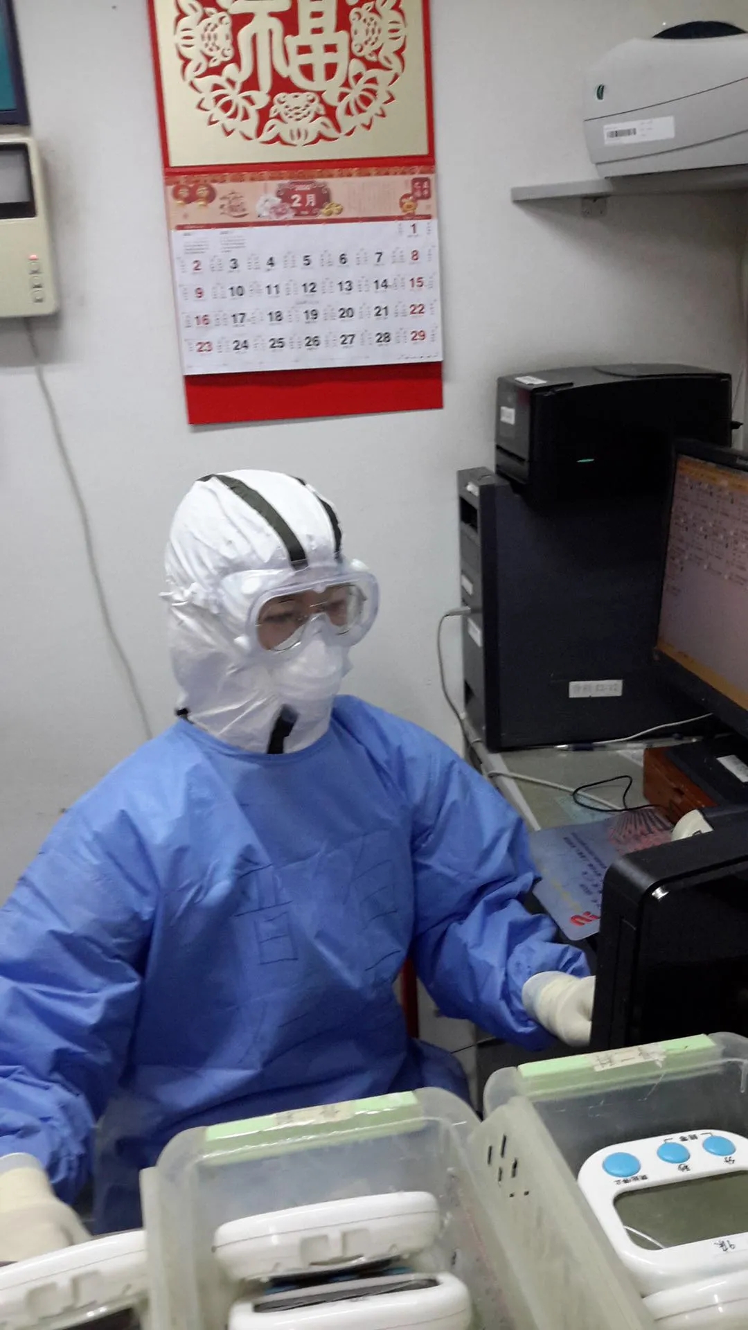 一進隔離病房,就是6個小時,為了節省防護裝備,妻子白雪必須提前半天就不能吃任何東西,不能喝任何液體。