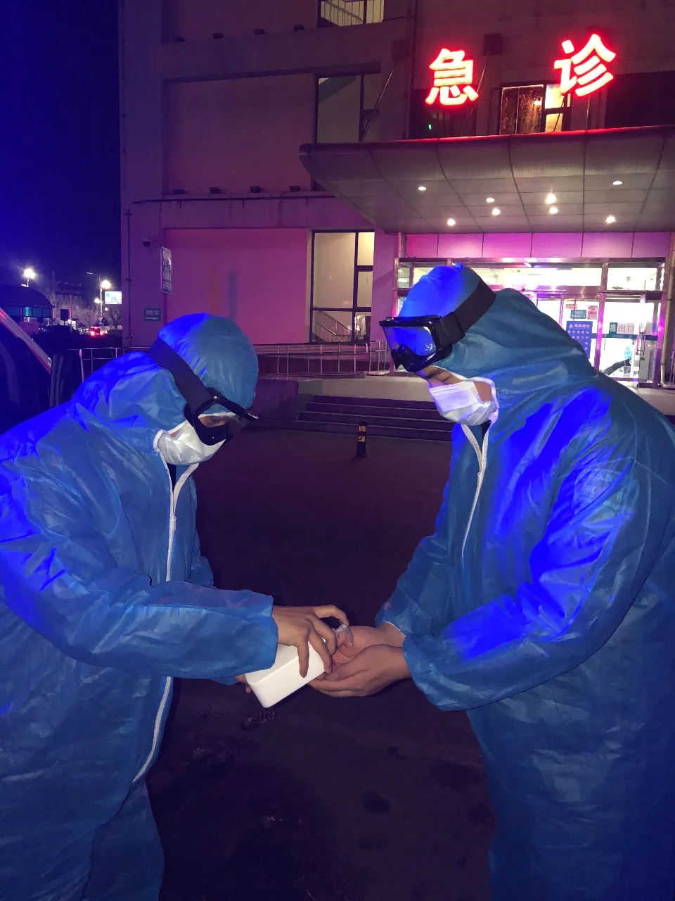 當(dāng)看到醫(yī)護人員累的坐在地上睡著