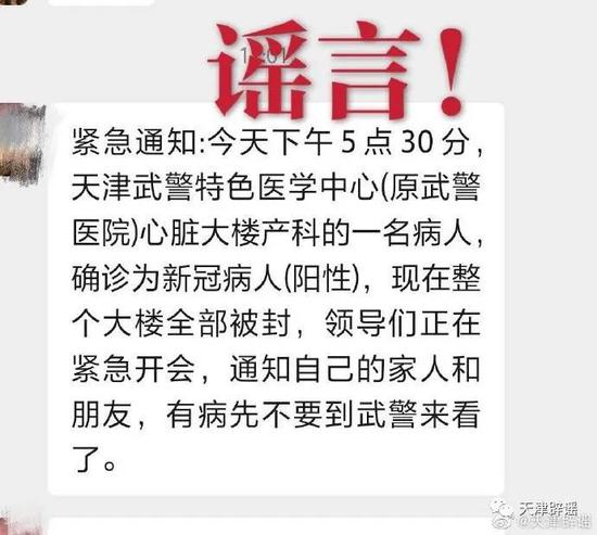 近日,天津武警特色醫學中心確診一名新冠肺炎患者的消息在微信圈群等平臺傳播。經核實,此條信息為虛假消息。