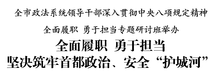 衡曉帆強調,要認真學習貫徹習近平總書記關于領導干部要履職擔當的重要指示精神,深入貫徹中央八項規定精神,全面落實中央政法委專題研討班和我市平安天津建設大會精神,全面履職、勇于擔當,全力做好上合組織峰會安保維穩工作,堅決筑牢首都政治、安全“護城河”。