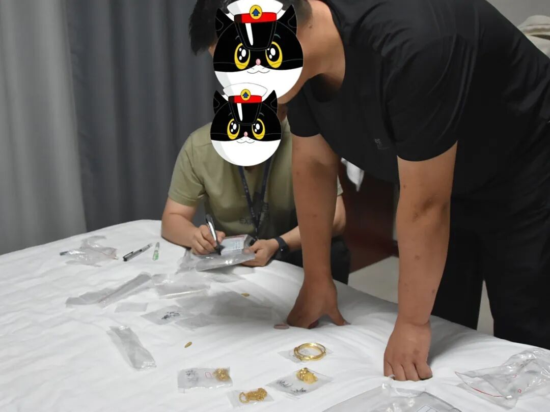 7月5日凌晨,民警展開突襲,將睡夢(mèng)中的犯罪嫌疑人林某甲(男)、林某乙(女)成功抓獲,當(dāng)場查獲“金項(xiàng)鏈”3條、“金手鐲”2只、“金戒指”2個(gè)、“金耳環(huán)”1對(duì)以及作案工具若干。
