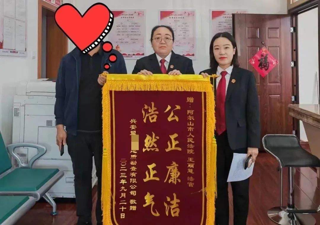 10月13日,阿爾山市人民法院民事審判法官王麗慧獲贈當(dāng)事人一面金燦燦的“公正廉潔浩然正氣”的八字頌言。原來,在一起合同糾紛案件中,王麗慧深入走訪、主動出擊,克服重重困難,幫助當(dāng)事人依法追回拖欠款840萬元。