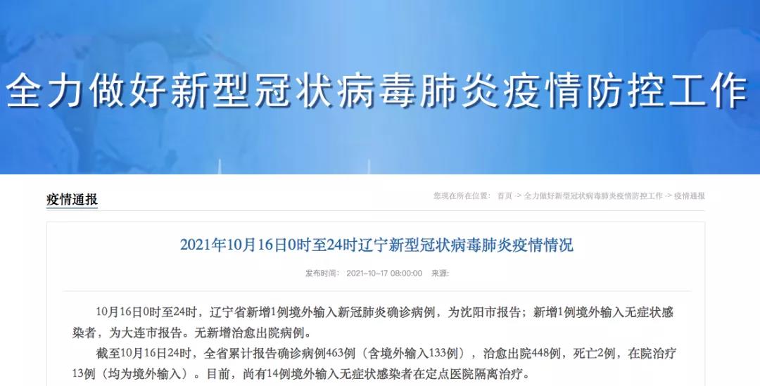 經(jīng)核實(shí),10月16日遼寧新增的為1例境外輸入新冠肺炎確診病例,為沈陽(yáng)市報(bào)告。目前,遼寧省衛(wèi)健委官網(wǎng)已做出更正。
