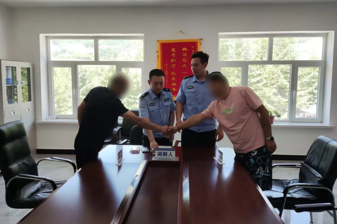 6月24日,寶山邊境派出所接村民王某報(bào)警稱與鄰居劉某發(fā)生激烈爭(zhēng)執(zhí)。民警到場(chǎng)安撫雙方情緒后了解到,雙方因土地邊界劃分問(wèn)題多年摩擦不斷,正值耕種期矛盾再次升級(jí)、互不相讓。為徹底化解糾紛,民警聯(lián)系村干部、查閱土地臺(tái)賬并實(shí)地測(cè)量,明確土地邊界后組織雙方調(diào)解。經(jīng)民警與村干部動(dòng)之以情、曉之以理的勸解,王某和劉某認(rèn)識(shí)到自身問(wèn)題并相互道歉,在民警與村干部見證下達(dá)成和解協(xié)議、握手言和。
