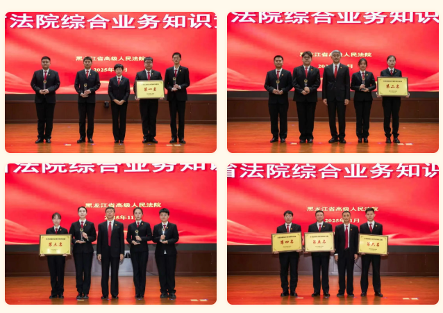整體賽事歷時2個月,全省人民法院200余名干警參與比賽,全省各級人民法院選拔出的17個代表隊,共計68名選手參加比賽。其中,半決賽與決賽,環環相扣、緊張激烈。半決賽中,參賽選手沉著應答、配合默契,搶答題環節反應迅速、比分緊咬,每一次作答都是對“嚴謹務實”作風的踐行;決賽階段,各代表隊更是拿出“爭一流”的勁頭,積極踴躍、你追我趕、奮勇爭先,尤其是附加賽環節,佳木斯代表隊與伊春代表隊經過18輪激烈比拼才最終分出勝負,現場氛圍扣人心弦,充分展現了全省人民法院干警過硬的專業素養、頑強的拼搏精神與良好的精神風貌。最終,農墾代表隊、牡丹江代表隊、佳木斯代表隊、伊春代表隊、鐵路代表隊、齊齊哈爾代表隊依次斬獲前6名。