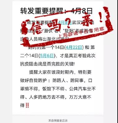 可見,這3版謠言乍看挺像那么回事,但細看實則站不住腳,是制造焦慮的不實傳言。武漢“解封”不易,武漢打開城門,上海也要為武漢打開大門,每一個上海市民都應該帶著敬意、帶著善意、帶著誠意歡迎武漢同胞來到上海,而不是人還沒來,謠言和焦慮先傳。