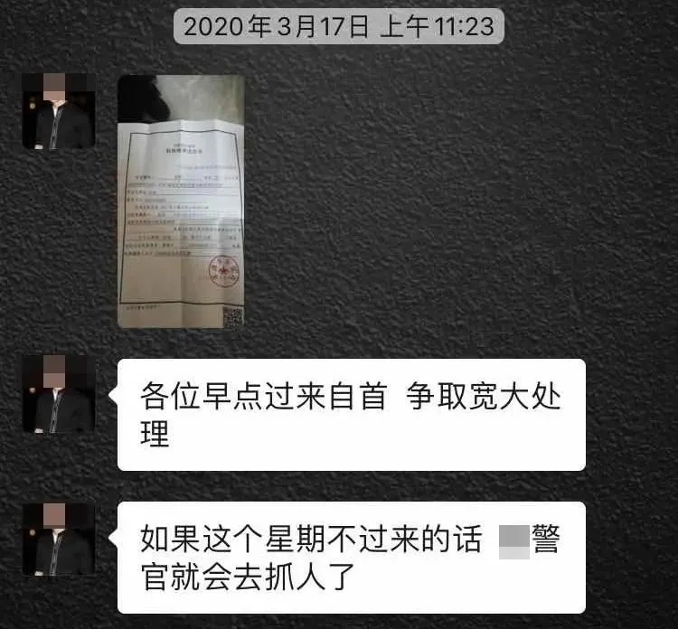 但還有5名嫌疑人始終不愿主動投案。“一起去自首吧,爭取寬大處理……”這時,群里的"前同事們"紛紛出來好言相勸,“鼓勵”他們一起組團去自首。