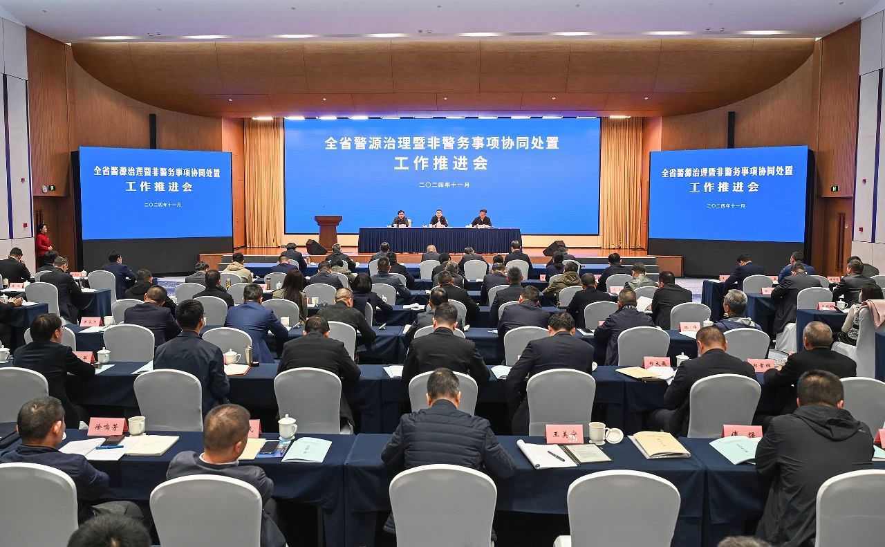 11月26日下午,浙江省警源治理暨非警務事項協同處置工作推進會在杭州市蕭山區召開。會議強調,要深入貫徹落實黨的二十屆三中全會和習近平總書記重要指示精神,堅持和發展新時代“楓橋經驗”,堅持關口前移、源頭治理,進一步推動警源治理和非警務事項協同處置工作走深走實,提升解決群眾訴求和矛盾糾紛源頭治理的能力水平。浙江省委常委、政法委書記王成國出席會議并講話。副省長、公安廳廳長楊青玖主持會議并通報全省工作情況。