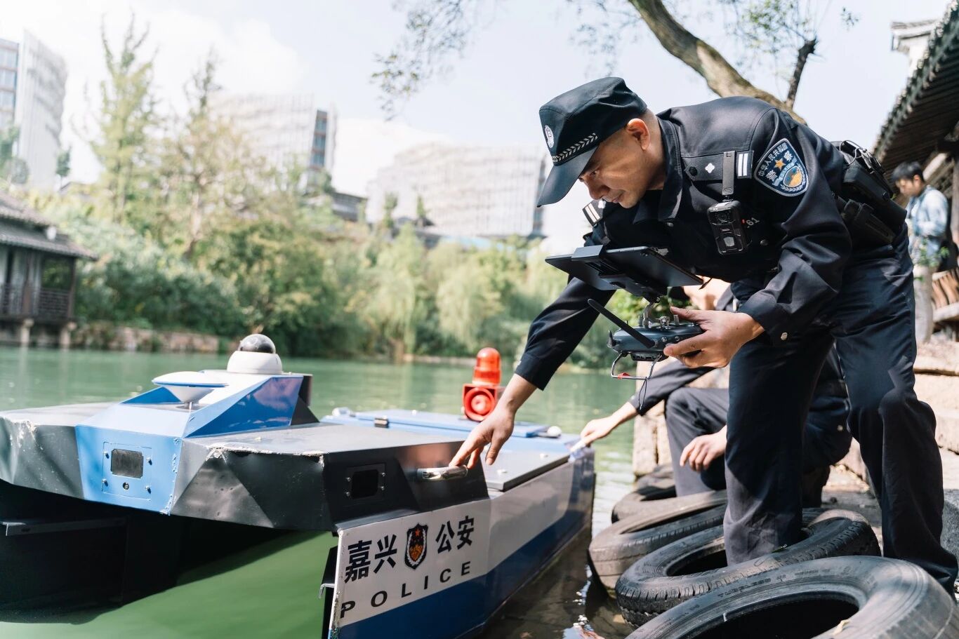 浙江各地公安機關積極發揮基層創新活力,探索出一批靈活高效的AI智能裝備和應用場景:嘉興公安在水網密集的水鄉小鎮,投用無人巡邏艇,通過5G網絡實現自動巡航、重要點位探測、水質實時監測等功能;麗水公安針對山區道路交通事故易發等情況,搭建道路交通異常事件監管應用,不僅實時監控自然災害,還可實時感知占道曬糧、違規停放等矛盾易發情況……