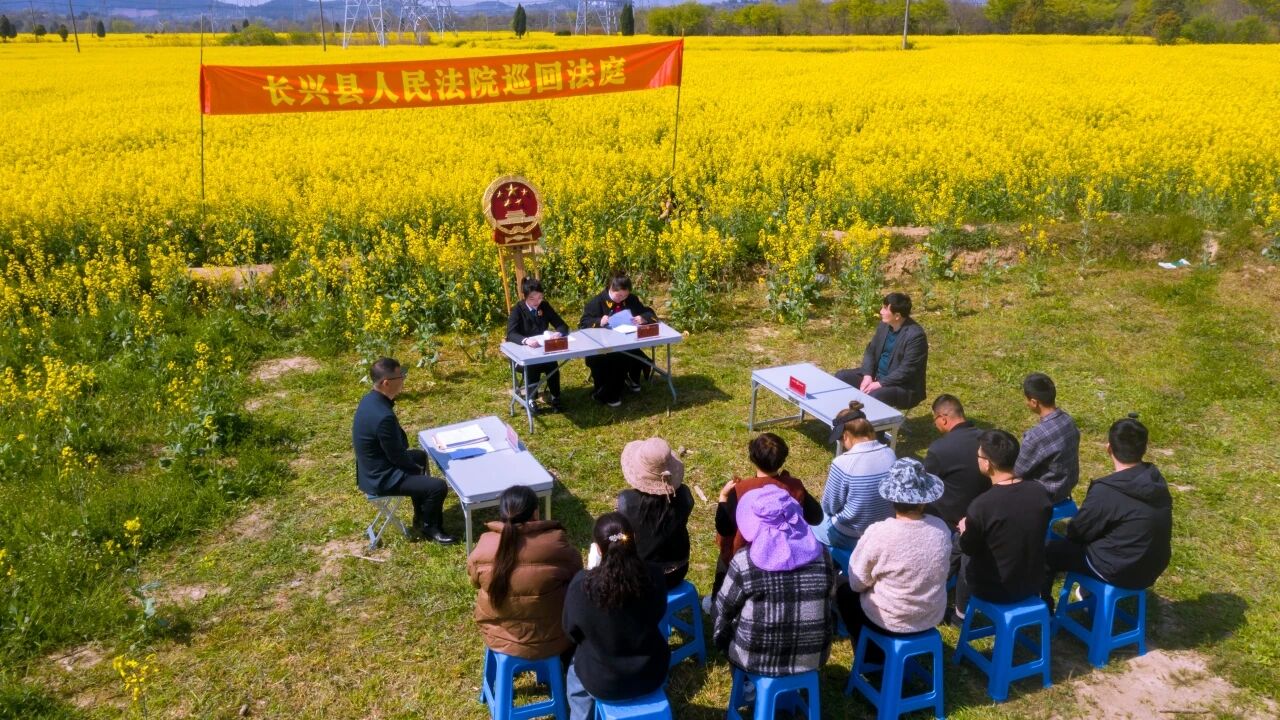 黃萼裳裳,花香滿溢。今年春天,隨著法槌的敲響,一場(chǎng)涉農(nóng)用無人機(jī)作業(yè)的侵權(quán)糾紛巡回審判在泗安的花田下進(jìn)行,幾十名村民和部分農(nóng)業(yè)專家現(xiàn)場(chǎng)旁聽。