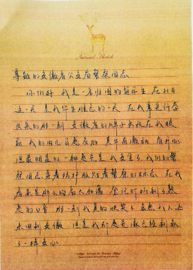 之所以特殊,是因為這封信的作者,是一位在疫情期間,從國外歸來的留學生。