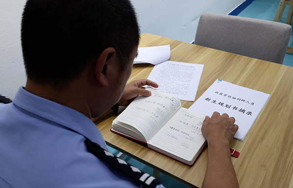 民警查看臨刑釋罪犯新生留言