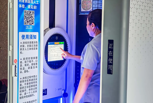 市民在24小時(shí)自助便民車(chē)管所使用自助體檢機(jī)體檢