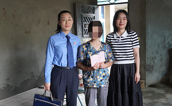 檢察官聯合婦聯工作人員前往因案致貧受害婦女家中發放司法救助金