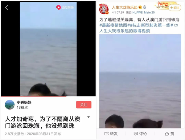 近日,部分新媒體平臺出現“為了不隔離從澳門游泳回珠?!钡奶摷傩畔?,涉事新媒體賬號在不核實內容的情況下以訛傳訛進行造謠,干擾疫情防控工作。珠海警方將依法對此類行為展開調查處理。
