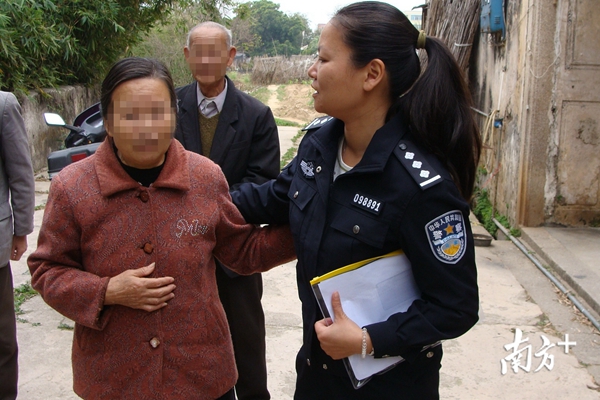 汕頭市澄海區看守所犧牲民警陳桂真生前走訪社區群眾。