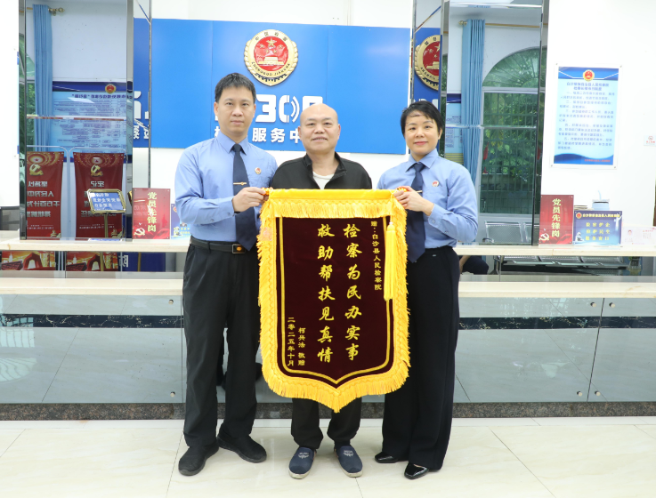 廖夢等檢察官為了幫助他解決生活上的困難,多方溝通聯絡,想方設法解決了他的生活問題,讓他特別感動。他真的沒有想到,一個身處異地的打工者,在他鄉遇到困境時,白沙檢察院伸出援手,既能為他維權,還能解決他的生活所困。所以,為表謝意,他特意寫了一封感謝信,并專門制作了一面錦旗,專程送到白沙檢察院。(宋飛杰)