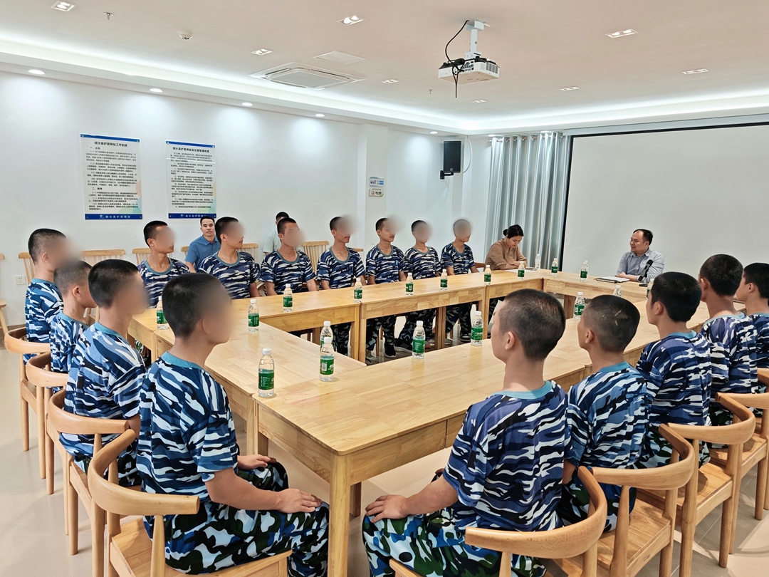陵水縣委副書記、政法委書記李夏走進縣護苗驛站矯治糾偏班,寄語未成年人。