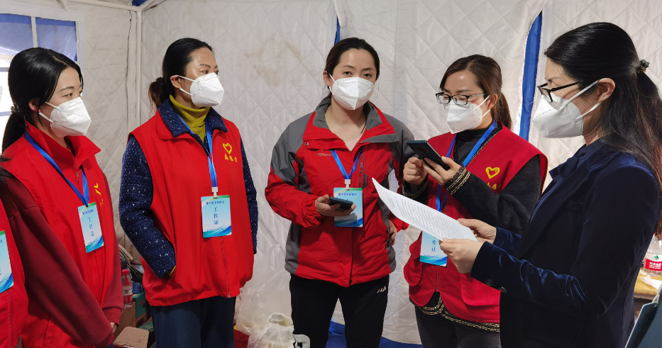 各街道轉(zhuǎn)運(yùn)車輛陸續(xù)到達(dá),“先安排送各街道隔離人員中的老人、孩子”“劉家堡街道的在這里核對人員信息……已反饋內(nèi)點(diǎn)位,通知這3名人員穿戴好防護(hù)用品,準(zhǔn)備下樓。”“十里店街道的車已返回,咱們再耐心等待下,保證今晚一定送你們回家。”所有的人都在井然有序的工作著,雖然忙碌,但很開心!