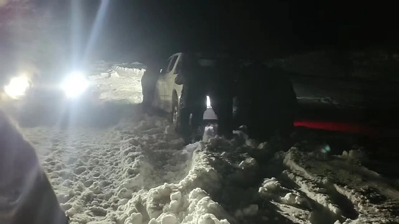救援途中,狂風裹著雪花砸向車身,路面深積雪致車輛屢屢陷滑。救援隊員們頂著刺骨寒風合力推車,遇車輛無法通行路段,便背負物資徒步前行。他們在齊膝深的積雪中艱難跋涉,僅憑手電的微光穿透風雪指引方向。