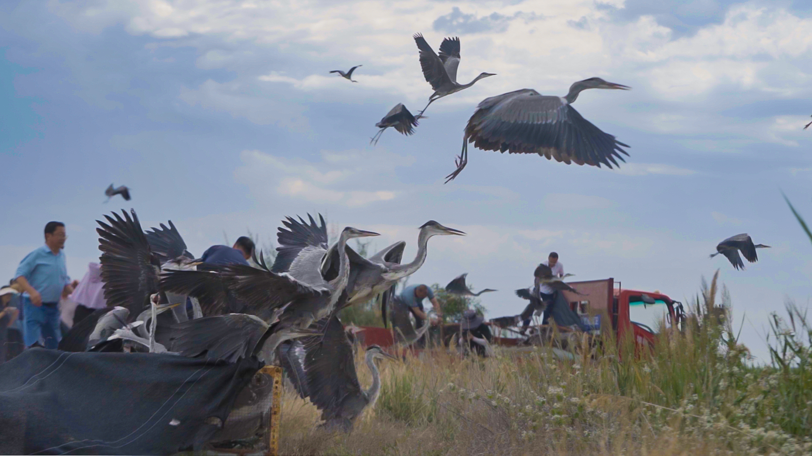 經過4個月的精心養護,曾經孱弱的蒼鷺幼鳥變得身形優美、羽翼豐滿、生動活潑,在大家共同見證下,1100余只蒼鷺振翅高飛、自由翱翔,奔赴山河而去。