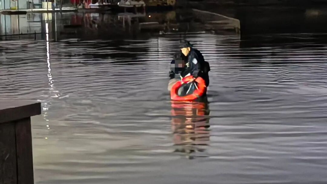 “必須馬上救人!”袁軍來不及脫掉警服,便攜帶救援設施翻越圍欄,縱身躍入冰冷的湖水中,奮力向男子游去。營救過程中,男子情緒激動、不斷掙扎,給救援工作帶來極大阻力。“我必須把你救上去,不能看著你死,我也是為你‘死過’這一回了,兄弟,跟哥回去!”輕生男子望著袁軍堅定的眼神,終于放棄掙扎。為加快救援進程,輔警李銘洲緊隨其后縱身躍入湖中,與袁軍前后接應,兩人在水中默契配合、奮力拖拽,最終將輕生男子托舉出水面、拉回岸邊。