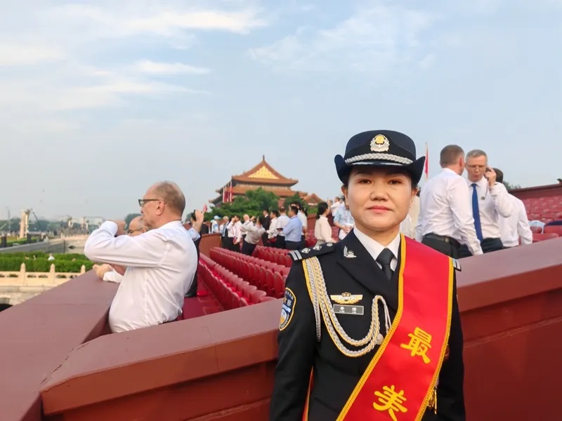 全國“最美基層民警”、木壘哈薩克自治縣公安局刑事偵查大隊(duì)大隊(duì)長香憬受邀赴天安門廣場參加紀(jì)念中國人民抗日戰(zhàn)爭暨世界反法西斯戰(zhàn)爭勝利80周年閱兵式觀禮(9月3日攝)。單杏花攝