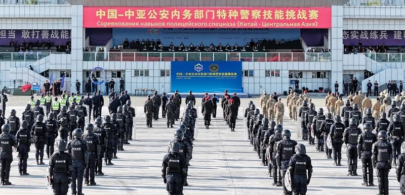首屆中國—中亞公安內(nèi)務(wù)部門特種警察技能挑戰(zhàn)賽在烏魯木齊市舉辦(9月8日攝)。劉華祥攝