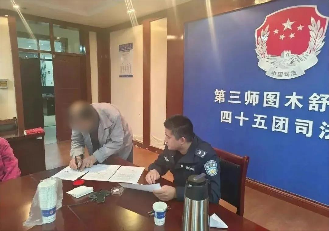 原來,他曾因兩噸肥料的貨款糾紛寢食難安——沒有單據、沒有影像,連卸貨地點都記憶模糊,只有一個客戶名字與電話。出乎他意料的是,45團司法所立即啟動兵地聯調機制,與麥蓋提縣吐曼塔勒鄉司法所聯動協作,在兩地同步展開調查。