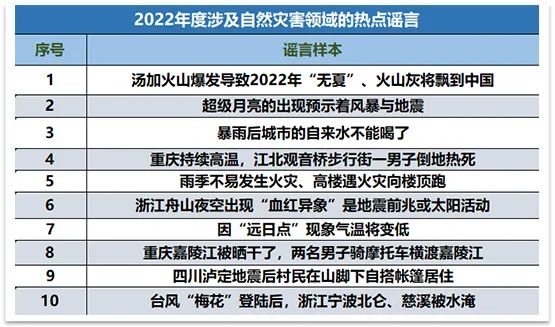 2022年,國(guó)際國(guó)內(nèi)熱點(diǎn)事件中,網(wǎng)絡(luò)謠言“趁虛而入”,時(shí)有發(fā)酵,涉及疫情防控、公共政策、社會(huì)事件、醫(yī)療健康、自然現(xiàn)象等公眾關(guān)心關(guān)切領(lǐng)域,可謂“套路百出”,令人深惡痛絕。針對(duì)網(wǎng)絡(luò)謠言這一痼疾,中國(guó)互聯(lián)網(wǎng)聯(lián)合辟謠平臺(tái)重拳出擊,全年共受理網(wǎng)民謠言舉報(bào)信息3萬(wàn)余條,匯集謠言樣本和辟謠數(shù)據(jù)2.45萬(wàn)條,共發(fā)布各類辟謠稿件1.31萬(wàn)篇,推出了12期《打擊網(wǎng)絡(luò)謠言 共建清朗家園 中國(guó)互聯(lián)網(wǎng)聯(lián)合辟謠平臺(tái)月度辟謠榜》、科學(xué)流言榜以及“涉防災(zāi)減災(zāi)辟謠榜”“涉化妝品辟謠榜”“涉高考高招辟謠榜”“涉食品安全辟謠榜”等行業(yè)辟謠榜單。這些謠言背后的真相您都了解了嗎?中國(guó)互聯(lián)網(wǎng)聯(lián)合辟謠平臺(tái)特此盤點(diǎn)解析,為您澄清謬誤,傳遞事實(shí)真相。