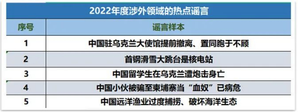 2022年2月,個(gè)別外媒發(fā)出“首鋼滑雪大跳臺(tái)是核電站”的歪曲報(bào)道,荒謬至極。烏克蘭危機(jī)爆發(fā)不久,網(wǎng)傳“中國(guó)駐烏克蘭大使館提前撤離、置同胞于不顧”,實(shí)際上當(dāng)時(shí)中國(guó)駐烏克蘭大使仍在基輔,并通過(guò)包機(jī)、包車等方式組織中國(guó)公民有序撤離。這類失實(shí)消息嚴(yán)重?fù)p害我國(guó)際形象。還有如“中國(guó)遠(yuǎn)洋漁業(yè)過(guò)度捕撈、破壞海洋生態(tài)”的傳言一度沸沸揚(yáng)揚(yáng),但真實(shí)情況卻是中國(guó)人吃魚主要靠養(yǎng)殖而非捕撈。相關(guān)謠言嚴(yán)重背離事實(shí)。